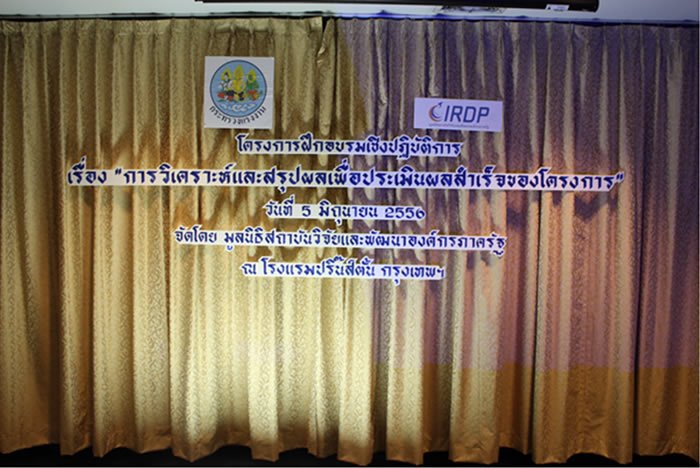 สำนักนโยบายและยุทธศาสตร์ สำนักงานปลัดกระทรวงแรงงาน ร่วมกับ มูลนิธิสถาบันวิจัยและพัฒนาภาครัฐ IRDP จัดโครงการฝึกอบรมเชิงปฏิบัติการ เรื่อง “การวิเคราะห์และสรุปผลเพื่อประเมินผลสำเร็จของโครงการ” ให้กับข้าราชการและเจ้าหน้าที่ในหน่วยงานภาครัฐที่รับผิดชอบการจัดทำโครงการตลอดจนการประเมินผลในการดำเนินโครงการต่างๆ ทั้งที่เป็นโครงการตามภารกิจประจำของหน่วยงานของรัฐและโครงการที่ดำเนินการตามนโยบายของรัฐบาล จำนวน 100 คน ในหัวข้อ ขั้นตอนการเตรียมการประเมินผลโครงการ และการวิเคราะห์และสรุปผลโครงการตามตัวชี้วัดรายมิติ 4 มิติ
