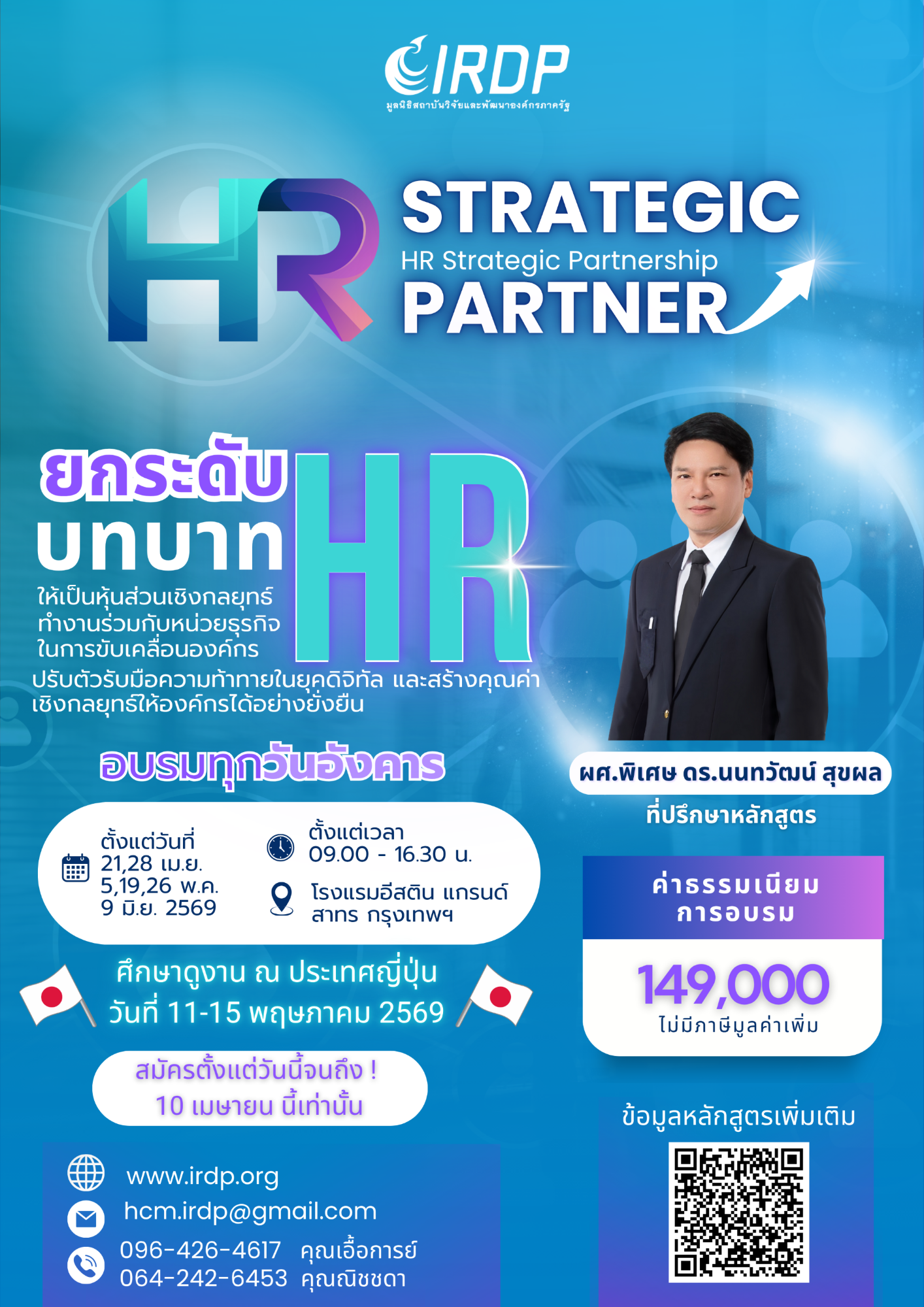 เปิดรับสมัครแล้ว หลักสูตร HR STRATEGIC PARTNER