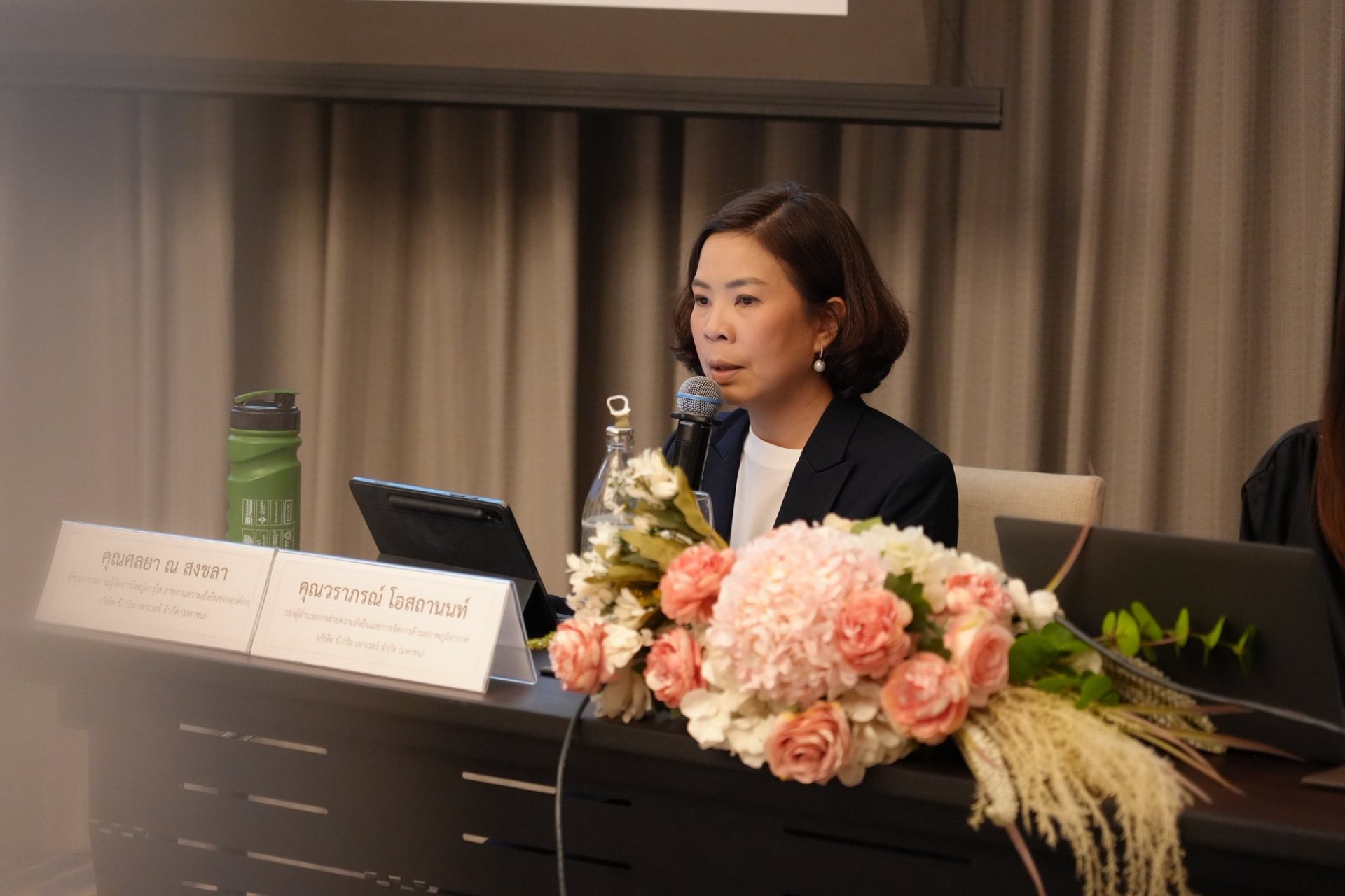 บริษัท บี.กริม เพาเวอร์ จำกัด (มหาชน) โดย คุณศลยา ณ สงขลา ผู้ช่วยกรรมการผู้จัดการใหญ่อาวุโส สายงานความยั่งยืนขององค์กร และ คุณวราภรณ์ โอสถานนท์ รองผู้อำนวยการฝ่ายความยั่งยืนและการจัดการด้านสภาพภูมิอากาศ ถ่ายทอดแนวทางการขับเคลื่อน ESG ในธุรกิจพลังงาน ที่มุ่งเน้นการบริหารจัดการทรัพยากรและสิ่งแวดล้อมอย่างมีประสิทธิภาพ พร้อมยกตัวอย่างการดำเนินงานด้าน Climate และการลดผลกระทบต่อสิ่งแวดล้อม ซึ่งสะท้อนบทบาทขององค์กรขนาดใหญ่ที่ต้องขับเคลื่อนความยั่งยืนในระดับโครงสร้าง
