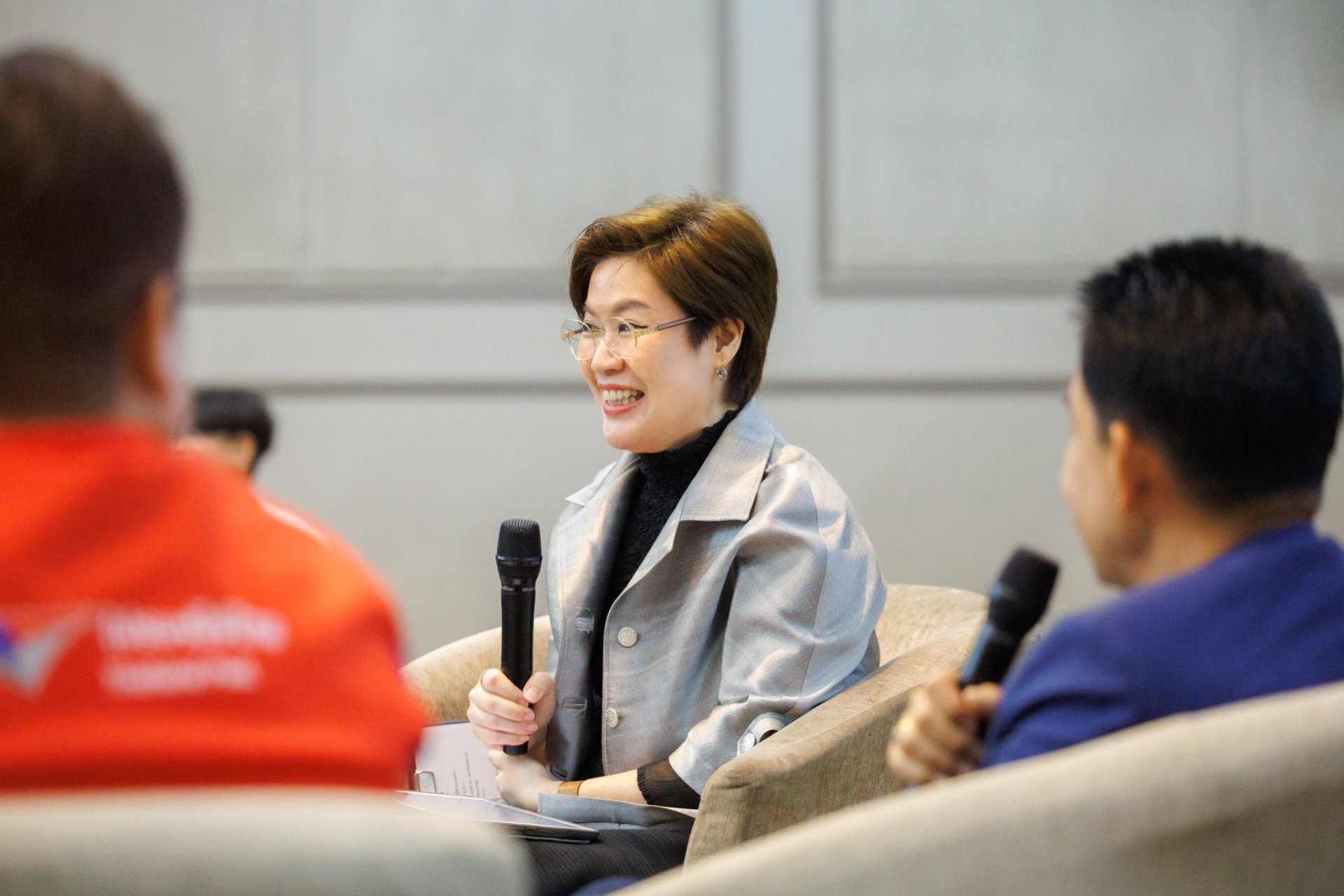ช่วง Panel Discussion ได้รับเกียรติจากผู้นำจากองค์กรรัฐวิสาหกิจในด้านสถาบันการเงิน ซึ่งดูแลกับเกษตรกรทั่วประเทศ และด้านเครือข่ายขนส่งที่บริการเข้าถึงชุมชนทั่วประเทศ โดยได้รับเกียรติจาก