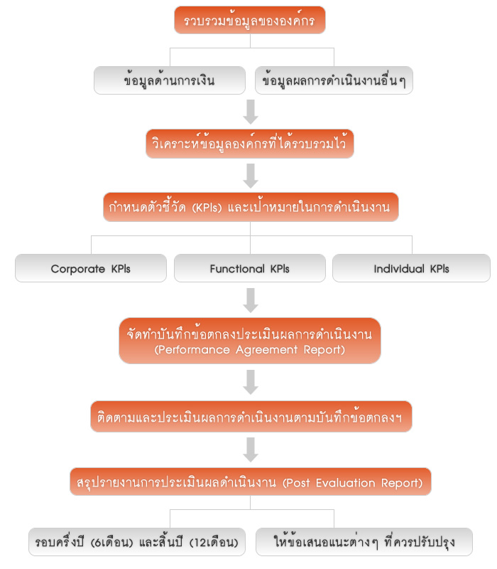 บริการให้คำปรึกษาระบบประเมินผลการดำเนินงานโดยประยุกต์ใช้เครื่องมือในการจัดการ (Management Tool) ที่เป็นที่รู้จักในระดับสากล เช่น Balanced Scorecard , Benchmarking , Economic Value Management และ Total Quality Management เป็นต้น เพื่อใช้ประเมินผลการดำเนินงานผ่านการออกแบบตัวชี้วัดผลการดำเนินงาน (Key Performance Indicators : KPIs) ทั้งในระดับองค์กร (Corporate) ระดับสายงาน / ฝ่ายงานและระดับบุคคล ซึ่งสามารถประยุกต์ใช้กับผู้ใช้บริการได้ทุกภาคส่วนทั้ง รัฐวิสาหกิจ หน่วยงานราชการ องค์กรอิสระ บริษัทเอกชน