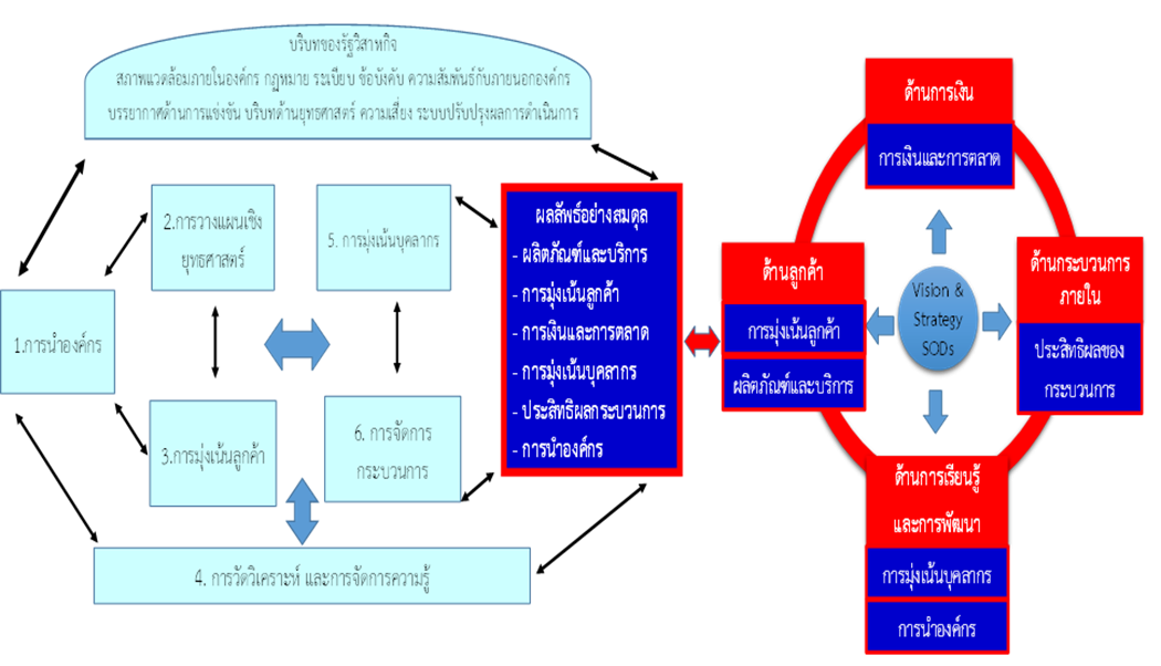 ซึ่งแนวทางการประเมินผลยังสามารถเชื่อมโยงกับกันได้ระหว่างเกณฑ์การประเมินระบบประเมินคุณภาพรัฐวิสาหกิจ และ BSC